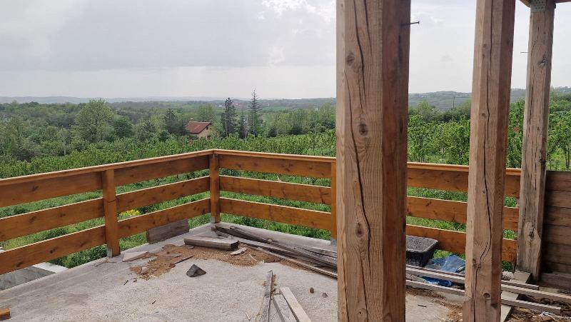 Na placu od 10,30 ari, gradjevinskog zemljista, prodaje se kuca -brvnara sa 95% izgradjenosti. Kuca se gradi sa pravnosnaznom gradjevinskom dozvolom. Vlasnik preuzima obavezu da preda kucu kompletno zavrsenu i privede uknjizbu kuce kraju. Kuca ima dva nivoa, na prizemlju su ulazni hoodnik, dnevna soba sa kuhinjom i trpezarijom, kupatilo, ostava i velika terasa U potkrovlju su dve spavace sobe, kupatilo, lodja.Trofazna struja, gradski vodovod, podno grejanje na gas. Pored placa put. Korisna stambena povrsina je 86m2, velika terasa 20m2, podrum 20m2. Agencijska provizija 2%