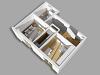 Velika dnevna soba sa trpezarijom i kuhinjom, radna soba, spavaca soba sa garderoberom, decija spavaca soba, kupatilo, toalet, veseraj (prostorija sa masinama za pranje i susenje vesa), ostava (prostorija sa vinskim friziderom)